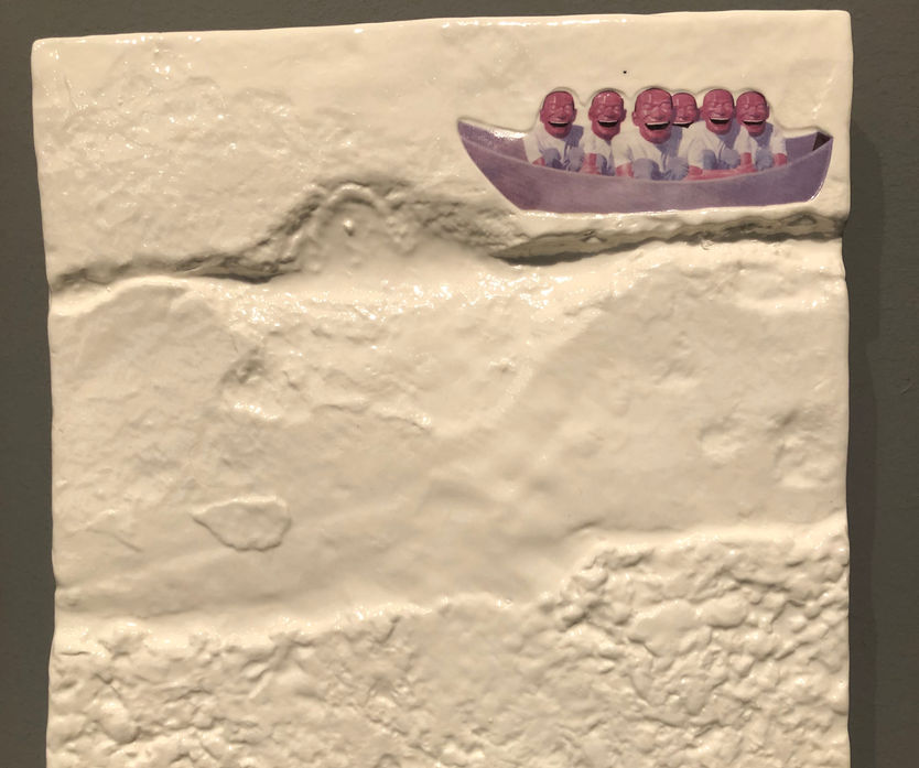 이미지와 흙의 만남, 도자기로 肉化되다. 도예가 최지만 교수가 유에민쥔 작가와 협업한 도조 작품을 선보입니다. 유에민쥔의 작품이 1200도가 넘는 가마 속에서 도자기 조각으로 재탄생했습니다. 한국과 중국을 대표하는 최고의 도공과 화공의 손길 속에서 흙과 형상이 하나가 되었습니다. 히브리어 ‘아담’이 ‘흙’을 뜻하듯이, 흙은 모든 생명과 문명의 토대이며 출발점입니다. 유에민쥔의 이미지가 최지만의 흙과 불을 통해 몸으로 肉化된 것입니다. 그 속에는 한 시대를 관통하는 고통과 해학이 가득 담겨있습니다. 두 작가의 진성성 있는 협업은 각종 굿즈가 범람하는 세태를 뒤돌아보게 만듭니다. 흙과 이미지를 통한 두 작가의 만남이 깊은 공명으로 관객들과 이어지기를 기대합니다.